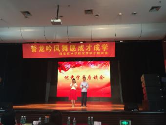 第二环节,优秀学子代表的访谈会。主持人与优秀学子代表谭婷、张金锋、盛雅兰、姜殷伟、李苏玲、徐建海、齐帅彬进行面对面的现场访谈,首先由优秀学子自我介绍,从而切入访谈环节,再层层剥开,将优秀学子的成长足迹展现在我们面前。而面对主持人的提问,优秀学子们结合自己的大学生活和经历进行了细致而幽默地回答。现场偶有严肃,却又时不时爆发笑声,学生们都很认真地听,企图从他们身上找到一条适合自己的方向亦或一些能够启发自己的内容,同时也被学姐学长的幽默所感染。活动中穿插的微信墙抽奖活动也获得一致好评。学生互动环节,1415级学生就自己目前的困惑向优秀学子代表展开了提问,有严肃的关于学术方面的,未来职业发展方向,考研知识,也有轻松幽默的,如何劳逸结合,怎样有收获的玩耍等等。学长学姐们热心而真诚地为我们解答了一系列疑惑,并表示日后亦欢迎学弟学妹们可以和他们联系与交流。最后,信息技术学院党支部蔡爱华书记对这次活动进行了致辞,她首先对我院的优秀学子给予充分的肯定,并希望他们再接再厉,亦祝愿在场的每一位学子能学有所成,成才成学!