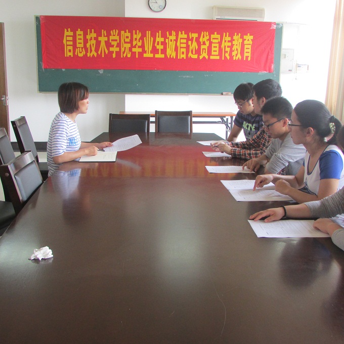 2016年6月12日上午10:30在院会议室组织开展了我院2016届贷款毕业生诚信还贷教育座谈会,所有2016届贷款毕业生准时参加。