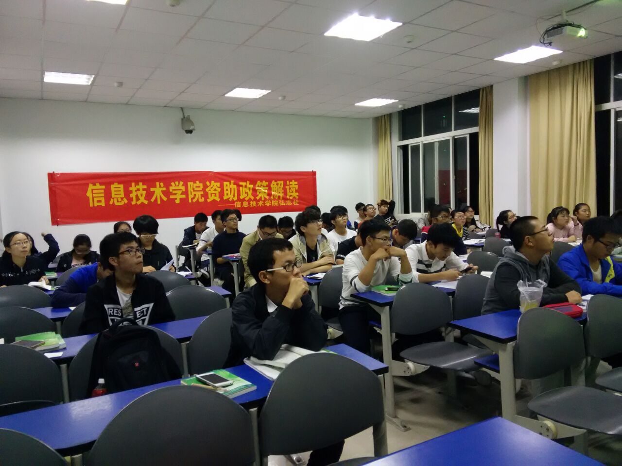 为了帮助学院16级新生深入地了解学校相关的资助政策,激励同学们更加努力地学习,信息技术学院弘志社在10月14日、10月18日分别在三个新生班级开展了主题为《信息技术学院资助政策解读》的宣讲活动并且取得了圆满成功。