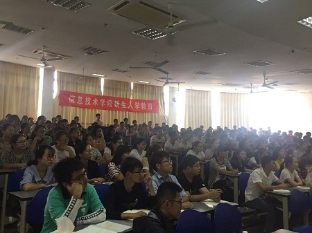2017年9月7日下午2时, B7教学楼102教室坐满了2017级信息技术学院的新生,大家满怀期待地等待我们的院长给大家做专业思想教育的讲座。