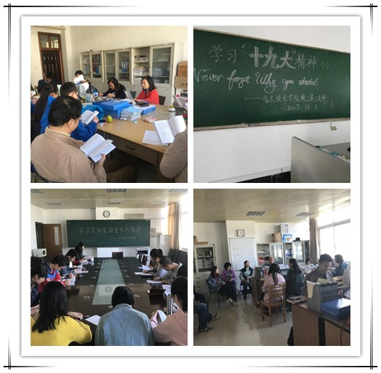 自十九大开幕以来,全体党员就已经通过各种方式观看、了解和学习大会精神,本次是第一次系统地对党的十九大报告等主要内容开展集体学习。学院党总支在会前就向各党支部、党员分发了电子版和纸质版的学习资料,并强调学习的意义和重要性,要求党支部书记负责,支委配合,做好会前预习、会上讨论记录和会后资料整理存档工作。