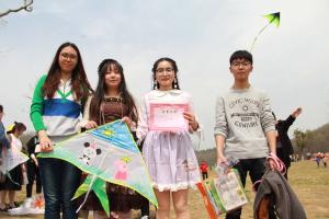 碧玉妆成一树高,万条垂下绿丝绦。柳芽中,花丛间,信息技术学院的学子们尽情享受着春风和阳光。所有参赛小组于9:40准时到达羊山公园,随即利用所分发的空白风筝和绘画工具,自行创作风筝,绘制完成后,各小组对其制作的风筝进行试飞。大约半小时后,所有小组集合进行统一放飞,评分员同时进行评分并对一、二、三等奖的小组授予了奖章。赛后大家一起合影留念。