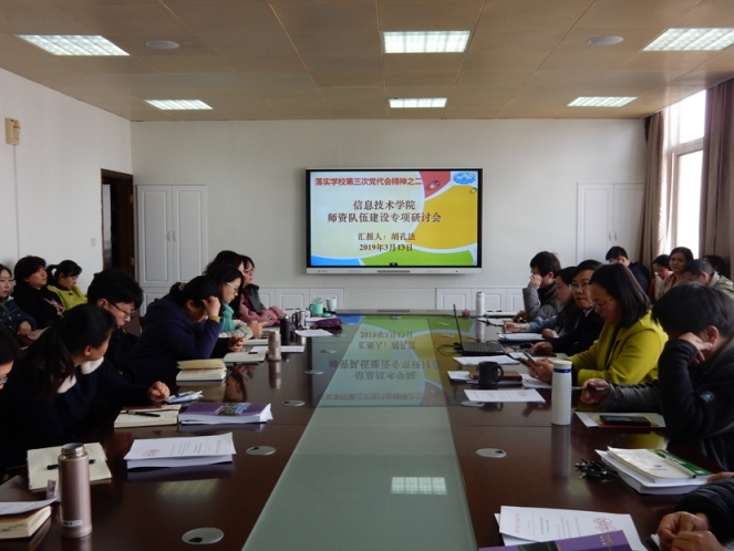 为了进一步落实学校第三次党代会精神,加强学院师资队伍建设,我院在3月13日下午组织全体教职工在学院会议室召开学院师资队伍建设专项研讨会,研讨会由学院党总支蔡爱华书记主持,胡孔法院长做专题研讨报告。