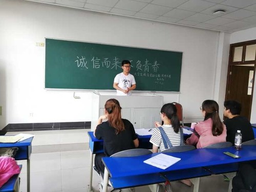 5月22日下午16:30,学院弘志社在B4-404进行以“诚信而来,不负青春”大学生诚信资助教育主题演讲比赛。参赛同学为我社2018级成员,到场的评委有社团指导老师刘小平、学生会代表成员和2位学生评委。