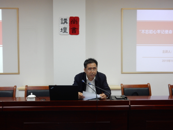 1030日下午,校党委委员、纪委书记张玉清在图书馆305学术交流室讲授“不忘初心、牢记使命”主题教育专题党课,纪委办公室、财务处、审计处、后勤管理处、国有资产与实验室管理处、基本建设处、图书馆、招投标管理服务中心全体党员,和人工智能与信息技术学院党员师生代表,共计100余人听取党课。