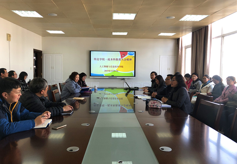 12月4日中午,人工智能与信息技术学院组织学院全体教职工召开了“传达学校一流本科教育大会精神”会议,会议由万佼副院长主持。