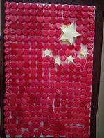 垃圾变废为宝环节了。在这个环节中,既有心灵手巧的吴雪莲同学为大家展示她用废报纸制作的三轮车,也有同学们齐心协力用废旧瓶盖拼成的五星红旗,旨在培养同学们的创新意识和正确处理垃圾的意识。