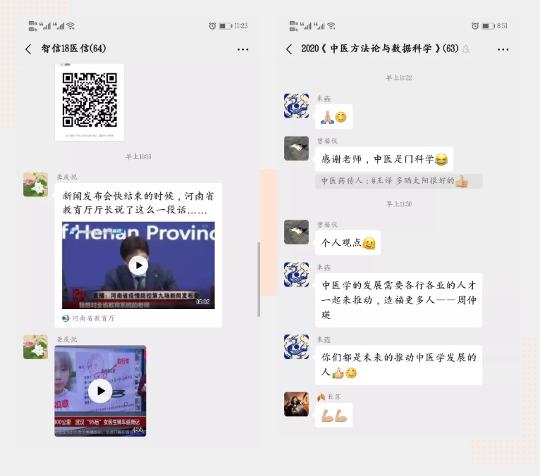 学院老师的在线教学继续坚持立德树人不放松,引导学生科学看待疫情,作为中医药大学的学生,通过课堂树立专业自信,文化自信。
