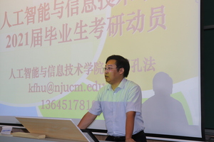 2020年9月29日上午十时,院长胡孔法在B7202给2021届毕业生做考研动员和学院研究生招生宣讲。到会的领导老师有殷明书记、孙荪副院长、张宁一老师、郑晓梅老师、周作建老师、龚庆悦老师,以及2017级全体在校生。