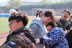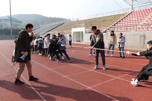 我院学生会于2020年11月29日上午在校西操场组织举办“2020年学院冬季拔河比赛”。比赛以班级为单位,共有10个班级参加此次拔河比赛。