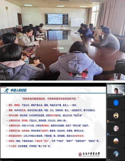 为扎实推进我院2022年国家自然科学基金项目申报工作,进一步加强组织管理、优化标书撰写、提升申报质量,力争2022年取得好成绩。2021年12月8日和11日,我院先后邀请南京邮电大学计算机学院院长、国家杰出青年基金获得者肖甫教授,上海中医药大学基础医学院院长许家佗教授通过腾讯在线会议召开了两场国家自然科学基金辅导报告会。会议由学院院长胡孔法教授主持,学院2022年度国家自然科学基金项目拟申报老师参加了会议。