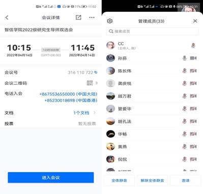 2022414日上午1030,我院通过腾讯会议召开了2022年度拟录取硕士研究生意向导师双选会,本年度全体招生导师及2022年度拟录取硕士研究生参加了此次双选会,会议由学院孙荪副院长主持。