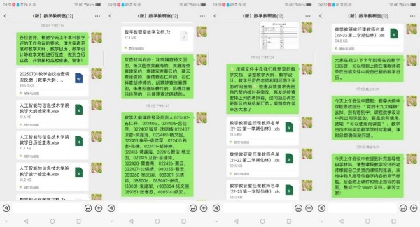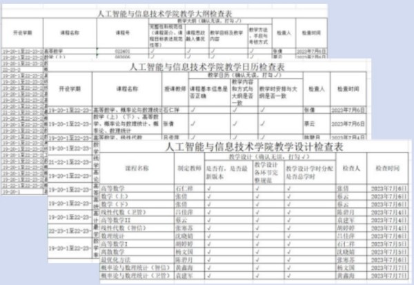 7月1日下午教研室老师在基本完成本学期的考务工作后,集中一周推进本科教育教学评估自评自建阶段整改工作。教学副主任在教研室群布置教学材料检查、互查安排,开展对教学大纲、教学日历、教学设计等教学文档进行互查,做到立行立改,并填报相应检查表。互查材料安排:沈晓婧查杨文国的,杨文国查黄鑫海的,黄鑫海查袁建军的,袁建军查蔡云的,蔡云查张倩的,张倩查石仁祥的,石仁祥查胡婷婷的,胡婷婷查张寒苏的,张寒苏查陈碧月的,陈碧月查吕佳萍的,吕佳萍查沈晓婧的。请每一位老师按照检查反馈要求先把自己的教学文件核对并优化,再发给检查安排上所列的老师看,没问题后再把更新后的发给教学副主任汇总。具体信息见下面图片: