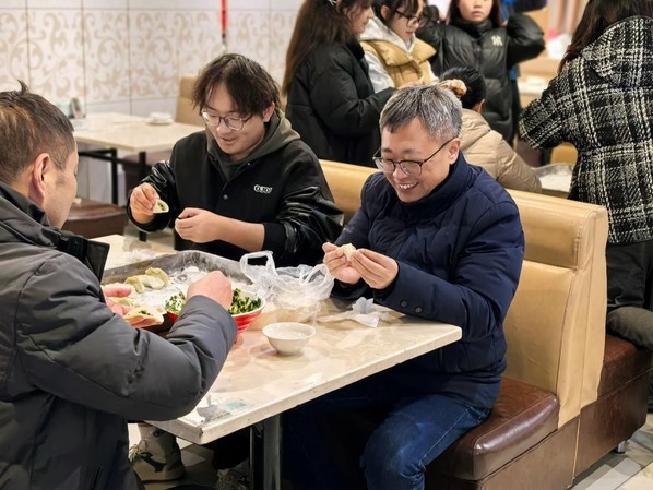 随着一盘盘饺子整齐出场,殷明也为考研学子们送上了关心与祝福。他指出,最后冲刺阶段,不论复习状态如何,都要满怀必胜信心,既要张弛有度复习,也要采用恰当方式释放压力,并祝愿全体2025级考研学子临门一“饺”,力争一战成“硕”。